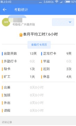 5、在統計界面也可以看到自己的考勤情況
