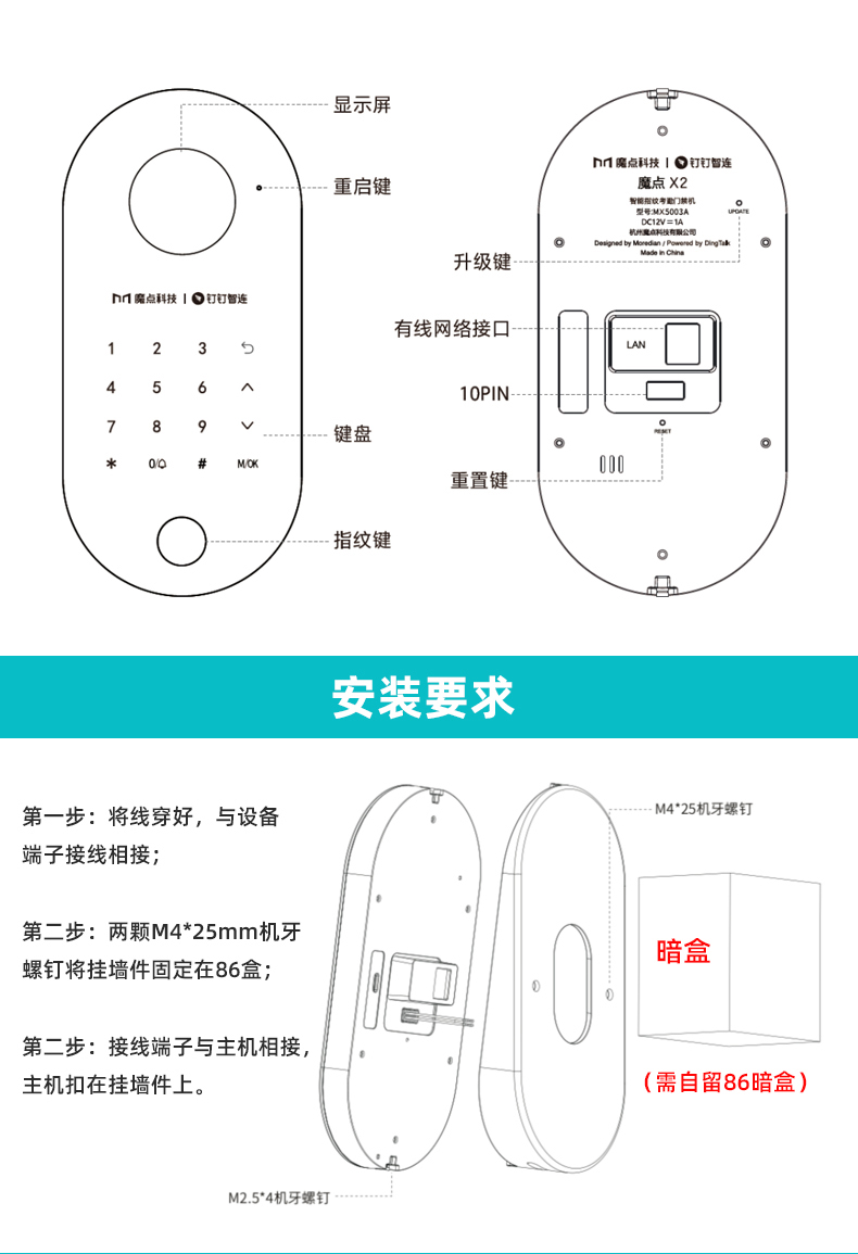 釘釘魔點X2門禁 智能指紋考勤機