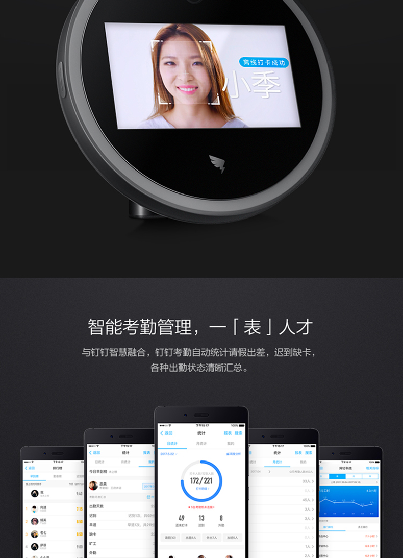 釘釘M2動(dòng)態(tài)打卡機(jī) 人臉識(shí)別考勤機(jī)